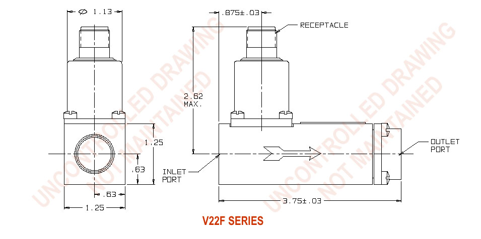 The V22F features the widest range of setpoints available in the Precision Sensors flow switch product line. The switch utilizes dual sensing element design featuring a sliding piston which interfaces with a mechanical vane. All models include hermetically sealed contacts making it ideal when vapor ignition is a concern.