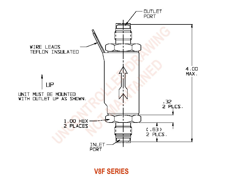V12F series (liquid): In applications with maximum system flows well above the desired set point, these flow switches offer low pressure drop. By using a large diameter bypass bore the pressure drop is reduced after switch actuation has occurred. With only one moving part the V12F series is designed for exceptional reliability. T he V12F presents a convenient solution to your high purity flow monitoring applications. Units are available with PVC or Stainless steel construction.
